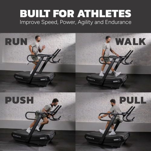 Imagina entrenar con el mismo equipo que utilizan los campeones de HYROX. La CENTR x HYROX Perform Tread no es solo una caminadora; es una herramienta diseñada para atletas que buscan superar sus límites y alcanzar el máximo rendimiento. Esta es la única caminadora curva desarrollada en colaboración directa con HYROX, la competencia global de fitness funcional. No es una máquina genérica: es un equipo de alto rendimiento diseñado para replicar las condiciones reales de carrera y trabajo funcional competitivo.