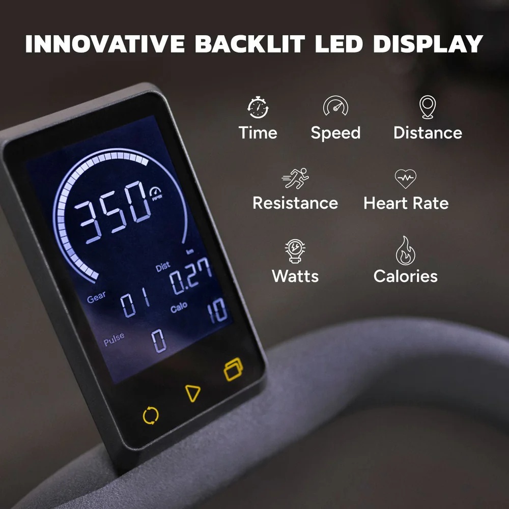 Con una estructura robusta de acero y slats de aluminio recubiertos de goma, la Perform Tread está construida para soportar entrenamientos intensos. Además, su pantalla LED retroiluminada muestra en tiempo real métricas esenciales como velocidad, distancia, calorías y frecuencia cardíaca, compatible con dispositivos Bluetooth como iPhone, iPads o dispositivos Android.
