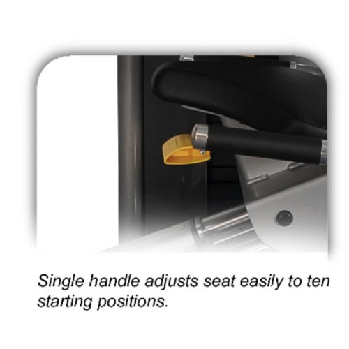 Excelente posicionamiento para ejerciciode pantorrilla y asiento fácilmente ajustable de 10 posiciones para acomodarte a la distancia idónea al momento de hacer el ejercicio.
