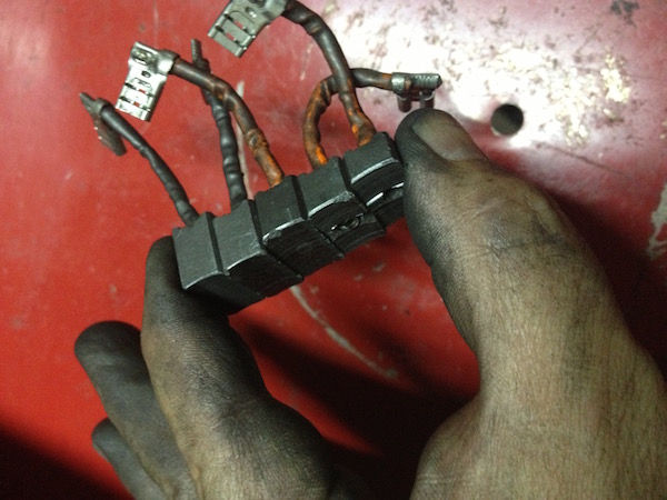 Los 3 carbones de la derecha muestran el remache que daña el conmutador.
