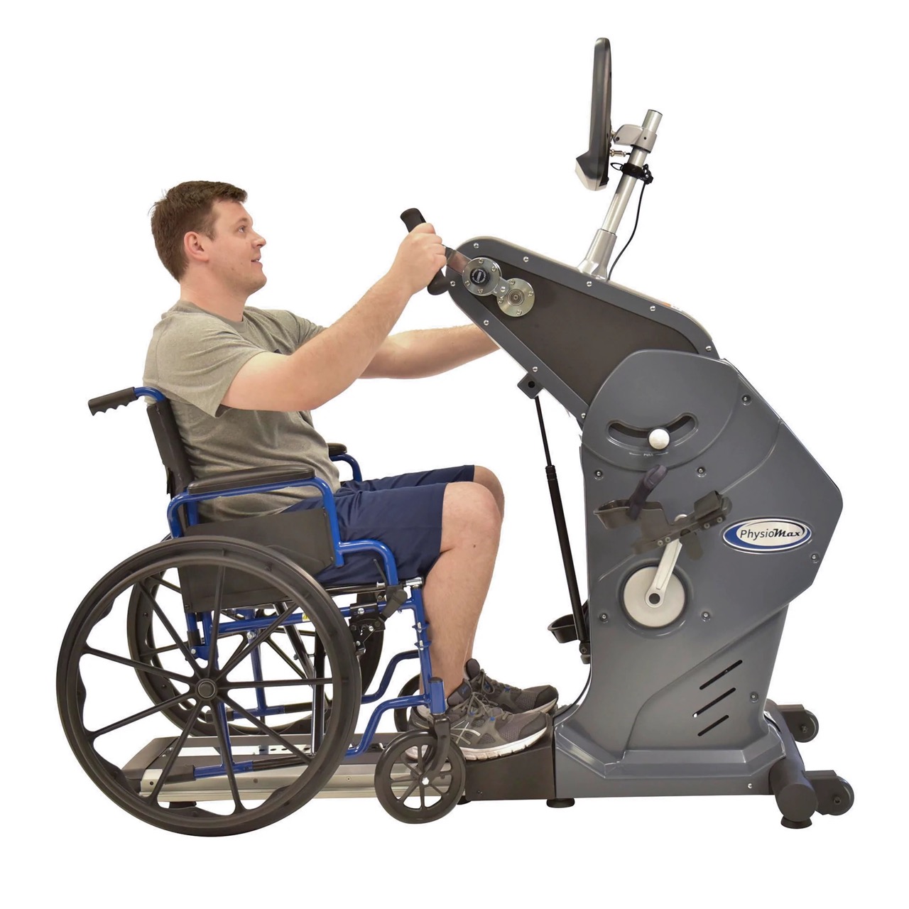 Acción independiente patentada para usar solo tren superior, solo tren inferior o ambos. Brazos UBE ajustables en altura y manivelas/pedales ajustables para adaptar el rango de movimiento. El asiento giratorio sobredimensionado facilita el acceso de usuarios con movilidad reducida. La consola de 9" integra programas y métricas completas para rehabilitación y acondicionamiento, con opción de exportar resumen vía USB.